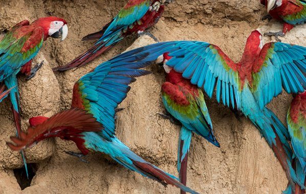 After an early breakfast we will be departing to Colorado clay lick, located at about 4 ½ hours up Tambopata river. This clay lick is actually one of the biggest on the banks of this part of the Tambopata river.